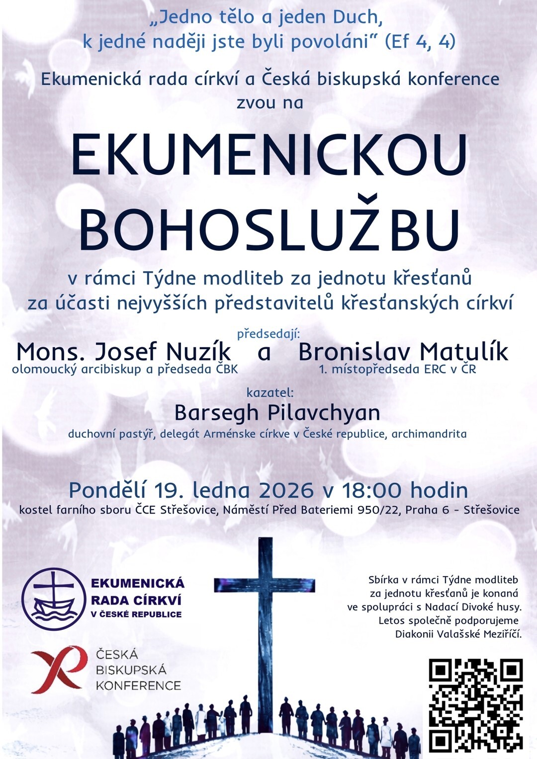Od 18. do 25. ledna 2026 se v České republice uskuteční Týden modliteb za jednotu křesťanů. Letošním tématem je verš z epištoly Efezským: „Jedno tělo a jeden Duch, k jedné naději jste byli povoláni“ (Ef 4, 4).