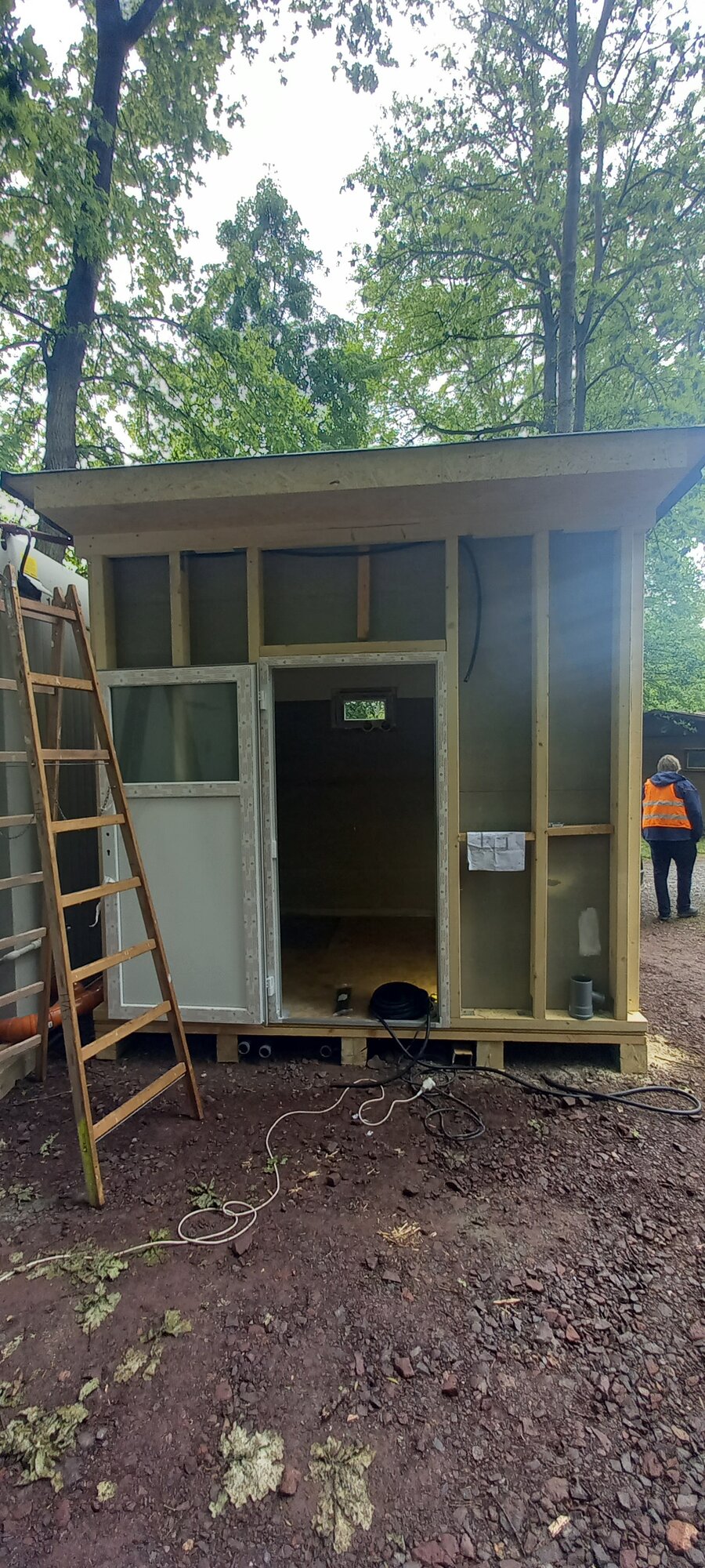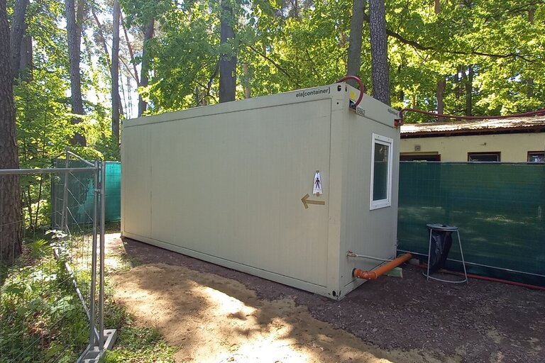 V průběhu prvního měsíce realizačních prací byly instalovány provizorní toalety a sprchy tak, aby byl pro návštěvníky tábora zajištěn plný servis i po dobu realizace stavby. Nezapomínáme ani na naše hosty s handicapem, pro které dokončujeme provizorní bezbariérové toalety se sprchou. V samotném objektu nyní probíhají bourací a přípravné práce, jejichž rozsah je nejlépe patrný z přiložených fotografií: