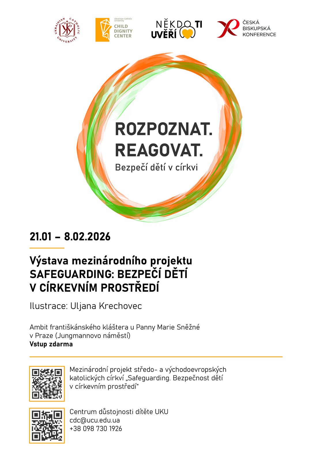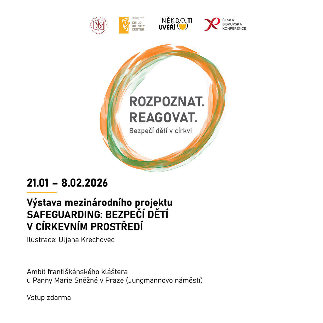 Ve středu 21. ledna 2026 se v ambitu františkánského kláštera na Jungmannově náměstí v Praze otevře expozice Rozpoznat. Reagovat. Bezpečí dětí v církvi. Výstavu připravil spolek Někdo Ti uvěří ve spolupráci s Českou biskupskou konferencí jako součást mezinárodního projektu Safeguarding: Bezpečí dětí v církevním prostředí. Jejím cílem je podpořit povědomí o zásadách bezpečného prostředí pro děti a mladé lidi v církvích.