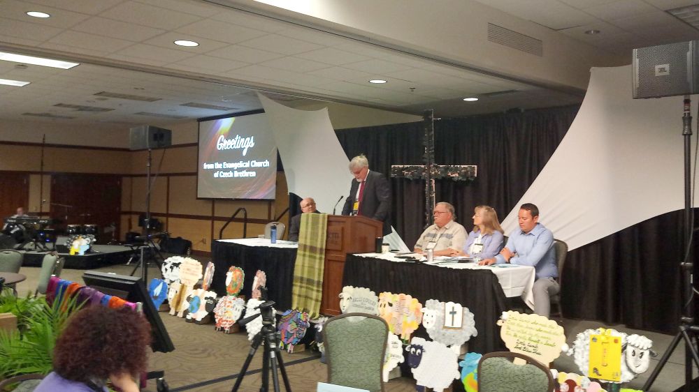 „Mám naději, že naše církve mohou prohloubit svůj vztah, mohou se vzájemně inspirovat a učit se jak být učedníky Ježíše Krista. A pokud v tom budeme úspěšní, naše společenství bude sloužit nejen nám navzájem, ale může sloužit v širším smyslu. V našem světě se prohlubují individualismus a sobectví. Buďme součástí alternativní cesty!“ řekl ve svém pozdravu synodní senior D. Ženatý. Předal přitom biskupovi Jimu Arendsovi skleněnou repliku kalicha, který používali čeští exulanti v Žitavě v 17. století.