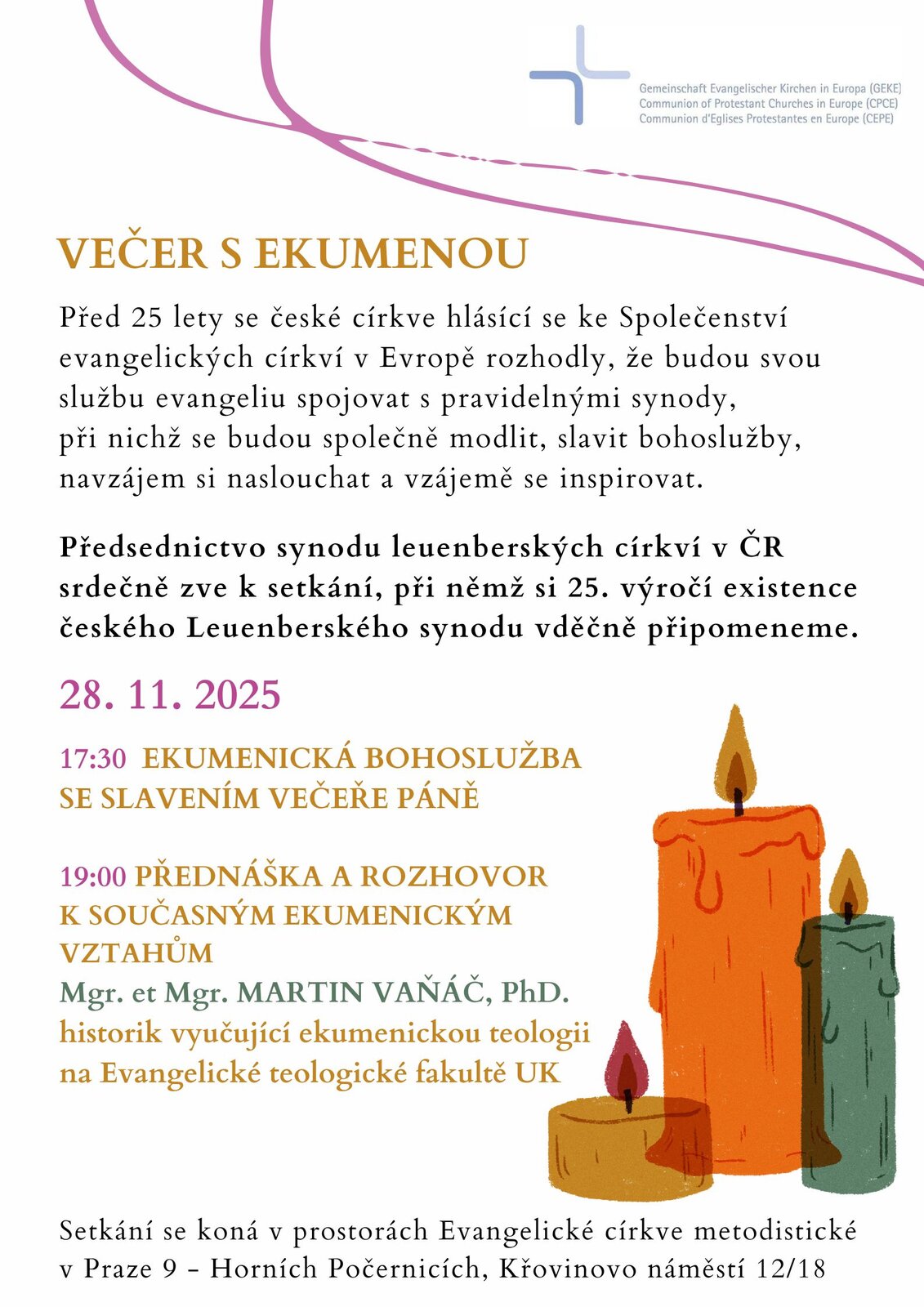 Kalendář obsahuje veřejné celocírkevní akce (spolu)pořádané Ústřední církevní kanceláří. Další akce sborů naleznete na jejich stránkách. Záznamy z některých proběhlých akcí naleznete na našem Youtube kanálu nebo v Audioarchivu.